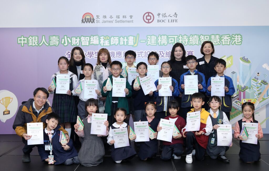 「中銀人壽小財智編程師計劃 – 建構可持續智慧香港」全港小學生手機應用程式設計及繪畫大賽頒獎典禮圓滿舉行,參賽學校的師生、評審及主禮嘉賓出席典禮,見證學生的創意成果。