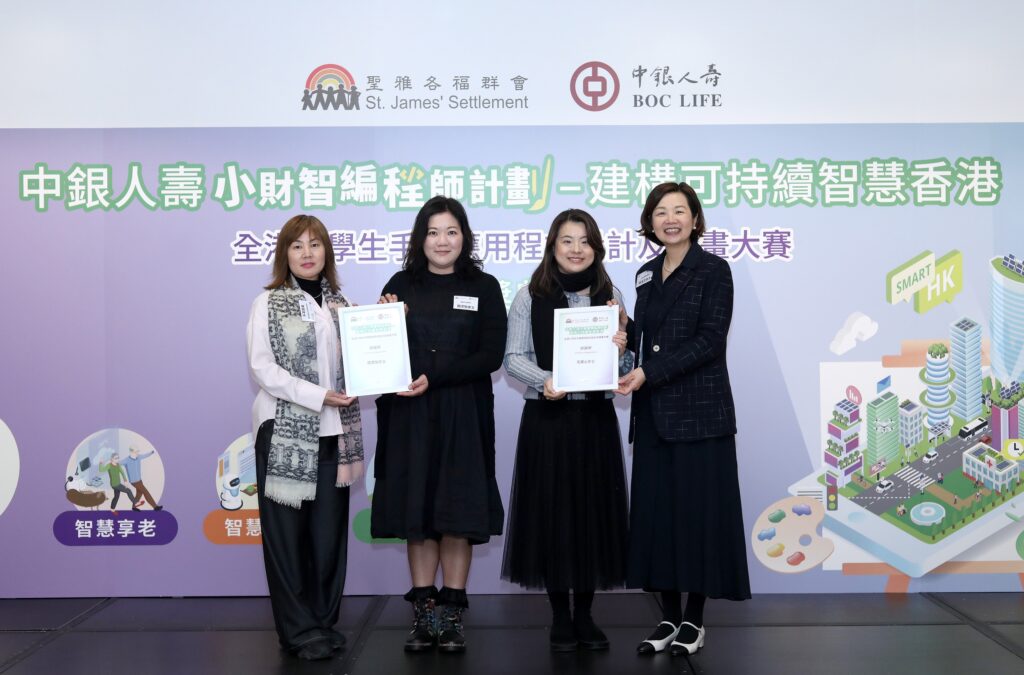 中銀集團人壽保險有限公司(「中銀人壽」)與聖雅各福群會攜手開啟STEAM教育新篇章,透過聯合主辦「中銀人壽小財智編程師計劃 – 建構可持續智慧香港」全港小學生手機應用程式設計及繪畫大賽(比賽),為學生提供應用及實踐STEAM知識和程式設計技能的平台,並藉跨界別合作,積極支持香港特區政府推動STEAM教育的方向,同時培育學生的創意、科研精神以及提高其對社會可持續發展的意識,為建設可持續智慧香港培育創科人才和生力軍。