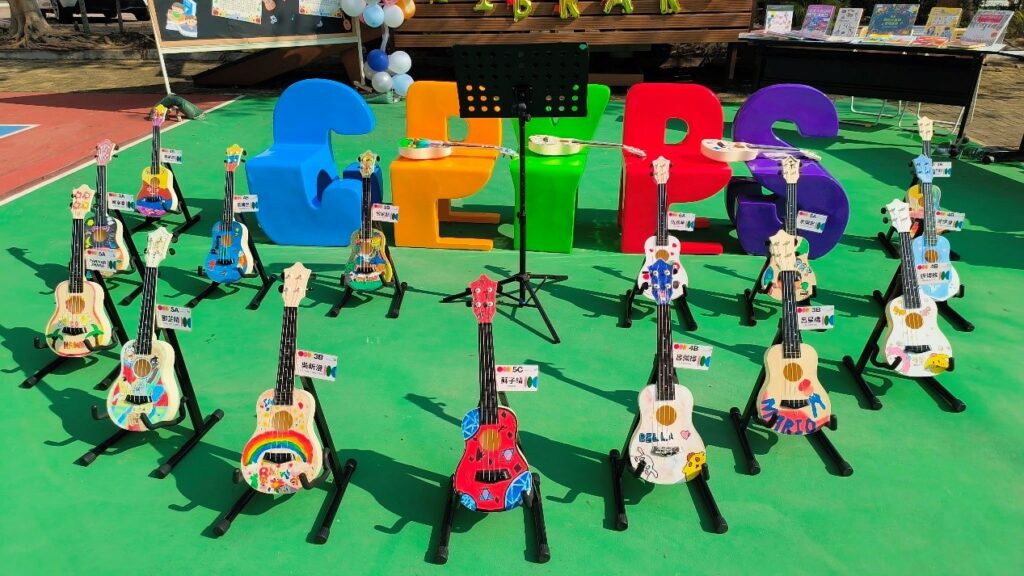 DIY樂器班為學生提供了表達創意和學習音樂的機會。在導師的指導下,學生們親手製作屬於自己的樂器,如ukulele和拇指琴,深入了解不同樂器的構造和原理。導師同時介紹基本音樂理論,包括音符、節拍和旋律,幫助學生建立音樂基礎,鼓勵他們探索音樂的世界。學生們使用自製的樂器與同學一起演奏簡單的音樂,從中促進和提升了彼此的合作與溝通技巧。