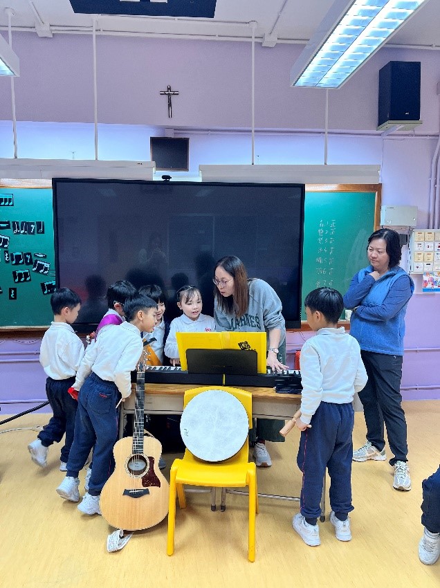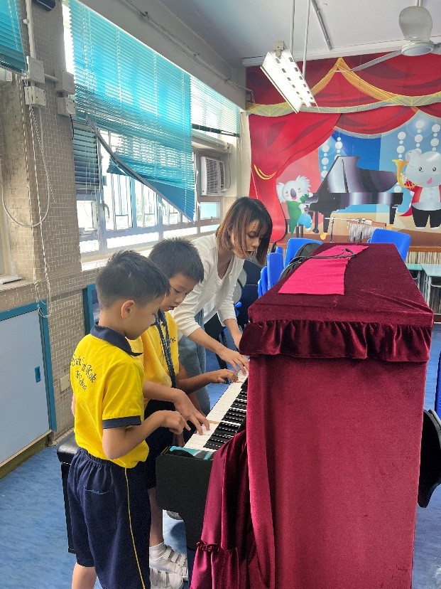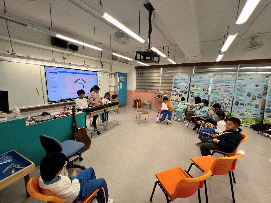 音樂治療鼓勵學生透過音樂探索和分享感受,幫助他們釋放內心的情緒,促進情感表達和社交能力。工作坊包括樂器演奏、唱歌和音樂創作等活動,主要使用適合小學生的敲擊樂器,如彩虹鐘、木魚、鼓、沙槌和鋼琴。